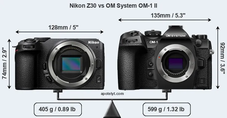 The Nikon Z30 and the OM System OM-1 II are two digital cameras that were revealed to the public, respectively, in June 2022 and January 2024. Both the Z30 and the OM-1 II are mirrorless interchangeable lens cameras that are based on an APS-C (Z30) and a Four Thirds (OM-1 II) sensor. The Nikon has a resolution of 20.7 megapixels, whereas the OM System provides 20.2 MP.