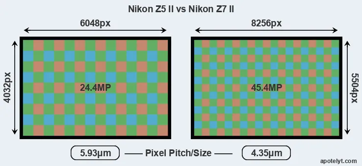 | Sensor Specs | Nikon Z5 II | Nikon Z7 II |