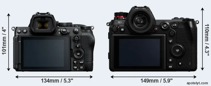 Both cameras under consideration feature a full frame sensor, but their sensors differ slightly in size. The sensor area in the S1 is 1 percent smaller. They nevertheless have the same format factor of 1.0. Both cameras have a native aspect ratio (sensor width to sensor height) of 3:2.