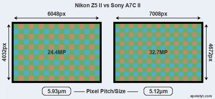 | Sensor Specs | Nikon Z5 II | Sony A7C II |