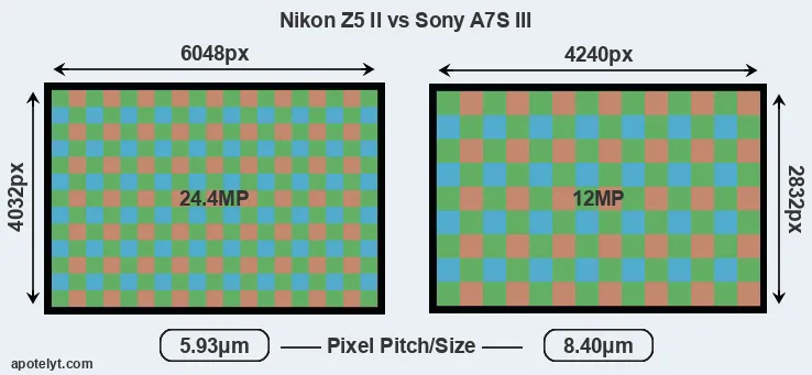 | Sensor Specs | Nikon Z5 II | Sony A7S III |