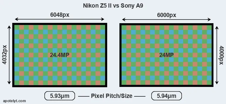 | Sensor Specs | Nikon Z5 II | Sony A9 |