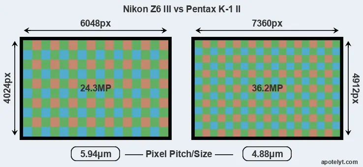 | Sensor Specs | Nikon Z6 III | Pentax K-1 II |