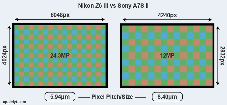 | Sensor Specs | Nikon Z6 III | Sony A7S II |