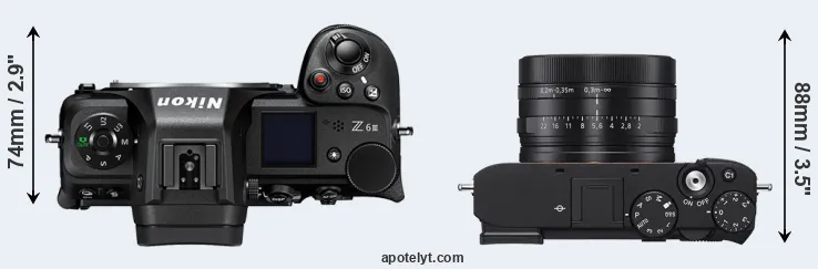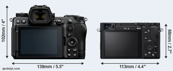The above size and weight comparisons are to some extent incomplete and possibly misleading, as the RX1R III has a lens built in, whereas the Z6 III is an interchangeable lens camera that requires a separate lens. Attaching the latter will add extra weight and bulk to the setup.