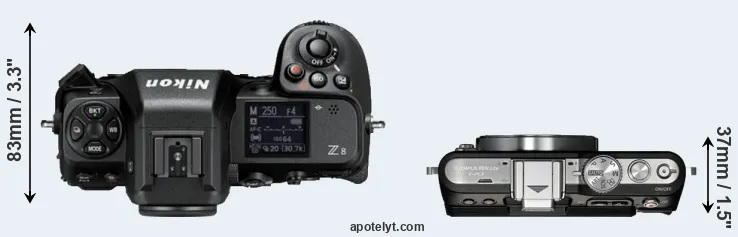 | 1. | Nikon Z8 | 144 mm | 119 mm | 83 mm | 910 g | 340 | Y | May 2023 | US$ 3 999 | amazon.com | |