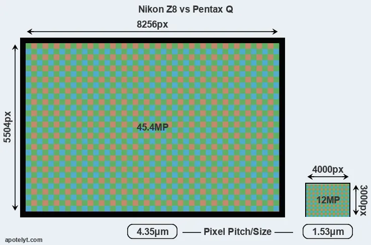 | Sensor Specs | Nikon Z8 | Pentax Q |