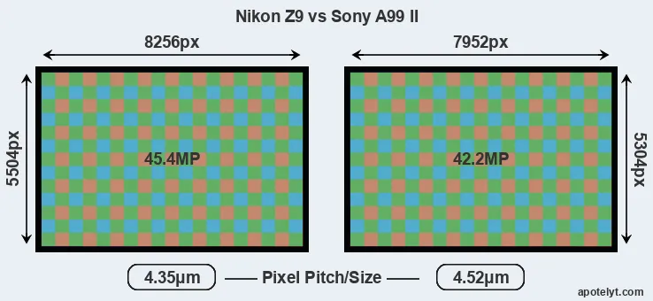 | Sensor Specs | Nikon Z9 | Sony A99 II |