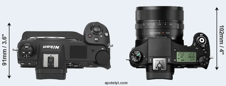 The above size and weight comparisons are to some extent incomplete and possibly misleading, as the RX10 II has a lens built in, whereas the Z9 is an interchangeable lens camera that requires a separate lens. Attaching the latter will add extra weight and bulk to the setup.