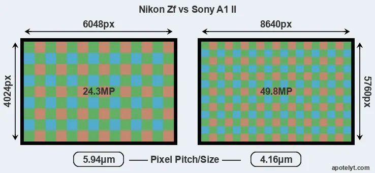| Sensor Specs | Nikon Zf | Sony A1 II |