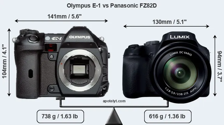 The above size and weight comparisons are to some extent incomplete and possibly misleading, as the FZ82D has a lens built in, whereas the E-1 is an interchangeable lens camera that requires a separate lens. Attaching the latter will add extra weight and bulk to the setup. You can compare the optics available for the E-1 and their specifications in the Four Thirds Lens Catalog.