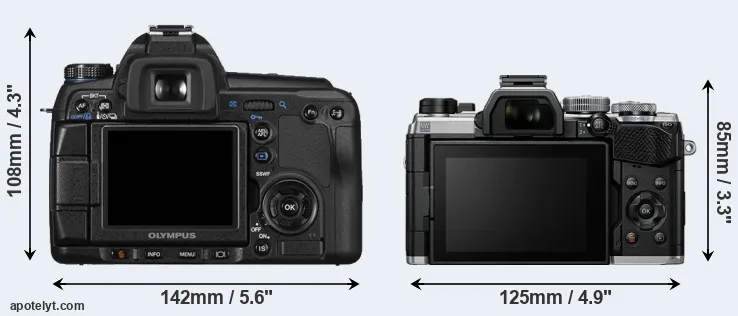 The above size and weight comparisons are to some extent incomplete since they do not consider the interchangeable lenses that both of these cameras require. Both cameras have similarly sized sensors, but DSLRs have a larger flange-to-focal plane distance than mirrorless cameras, which imposes contraints on the optical engineering process and generally leads to bigger and heavier lenses. You can compare the optics available for the two cameras in the Four Thirds Lens Catalog (E-30) and the Micro Four Thirds Lens Catalog (OM-5). Mirrorless cameras, such as the OM-5, have moreover the advantage that they can use many lenses from other systems via adapters, as they have a relatively short flange to focal plane distance.