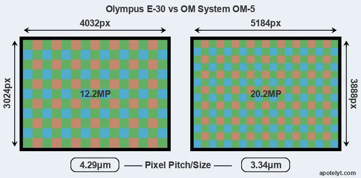 | Sensor Specs | Olympus E-30 | OM System OM-5 |