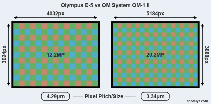 | Sensor Specs | Olympus E-5 | OM System OM-1 II |