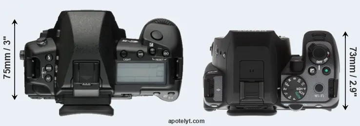 | 16. | Pentax KP | 132 mm | 101 mm | 76 mm | 703 g | 390 | Y | Jan 2017 | US$ 1 099 | ebay.com | |