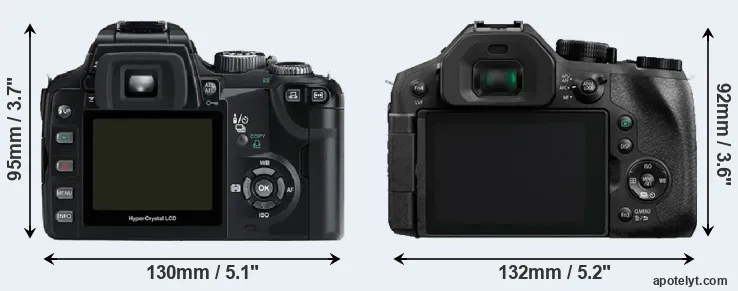 | Body Specs | Olympus E-500 | Panasonic FZ330 |