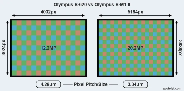 | Sensor Specs | Olympus E-620 | Olympus E-M1 II |