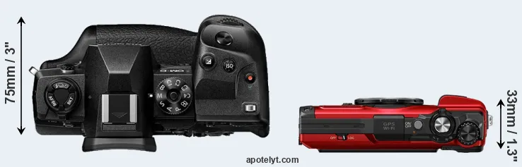 The above size and weight comparisons are to some extent incomplete and possibly misleading, as the TG-7 has a lens built in, whereas the E-M1X is an interchangeable lens camera that requires a separate lens. Attaching the latter will add extra weight and bulk to the setup. You can compare the optics available for the E-M1X and their specifications in the Micro Four Thirds Lens Catalog.