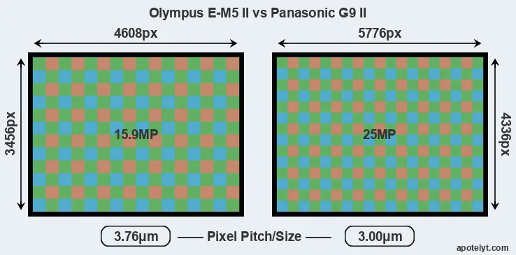 | Sensor Specs | Olympus E-M5 II | Panasonic G9 II |