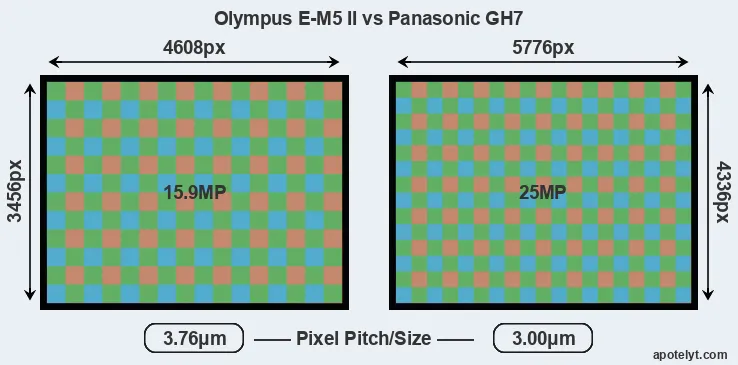 | Sensor Specs | Olympus E-M5 II | Panasonic GH7 |