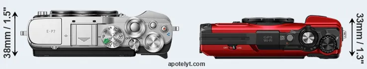 The above size and weight comparisons are to some extent incomplete and possibly misleading, as the TG-7 has a lens built in, whereas the E-P7 is an interchangeable lens camera that requires a separate lens. Attaching the latter will add extra weight and bulk to the setup. You can compare the optics available for the E-P7 and their specifications in the Micro Four Thirds Lens Catalog.