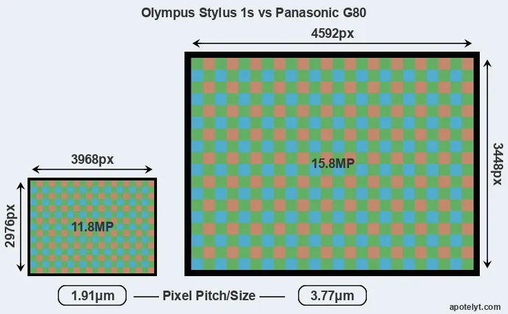| Sensor Specs | Olympus Stylus 1s | Panasonic G80 |