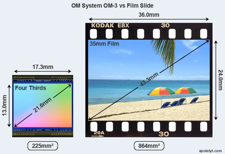 The OM System OM-3 features a Four Thirds sensor and has a format factor (sometimes also referred to as "crop factor") of 2.0. Within the spectrum of camera sensors, this places the OM System OM-3 among the medium-sized sensor cameras that aim to strike a balance between image quality and portability.