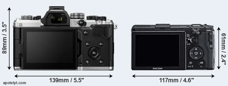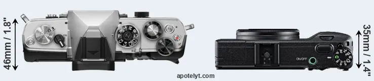The above size and weight comparisons are to some extent incomplete and possibly misleading, as the GR has a lens built in, whereas the OM-3 is an interchangeable lens camera that requires a separate lens. Attaching the latter will add extra weight and bulk to the setup. You can compare the optics available for the OM-3 and their specifications in the Micro Four Thirds Lens Catalog.