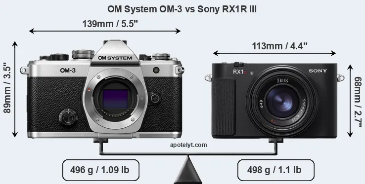Size OM System OM-3 vs Sony RX1R III