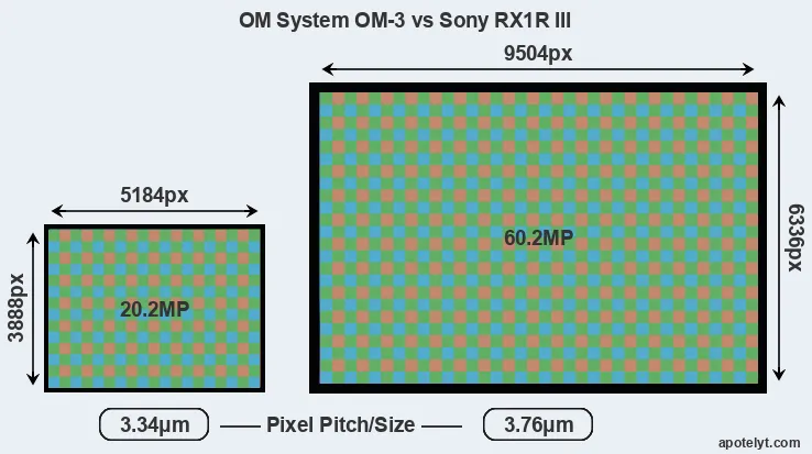 OM System OM-3 and Sony RX1R III sensor measures