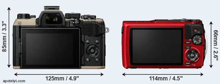 The above size and weight comparisons are to some extent incomplete and possibly misleading, as the TG-7 has a lens built in, whereas the OM-5 II is an interchangeable lens camera that requires a separate lens. Attaching the latter will add extra weight and bulk to the setup. You can compare the optics available for the OM-5 II and their specifications in the Micro Four Thirds Lens Catalog.