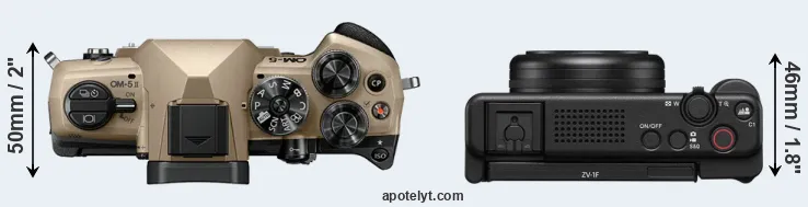The above size and weight comparisons are to some extent incomplete and possibly misleading, as the ZV-1F has a lens built in, whereas the OM-5 II is an interchangeable lens camera that requires a separate lens. Attaching the latter will add extra weight and bulk to the setup. You can compare the optics available for the OM-5 II and their specifications in the Micro Four Thirds Lens Catalog.