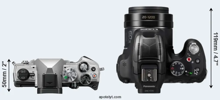 The above size and weight comparisons are to some extent incomplete and possibly misleading, as the FZ82D has a lens built in, whereas the OM-5 is an interchangeable lens camera that requires a separate lens. Attaching the latter will add extra weight and bulk to the setup. You can compare the optics available for the OM-5 and their specifications in the Micro Four Thirds Lens Catalog.
