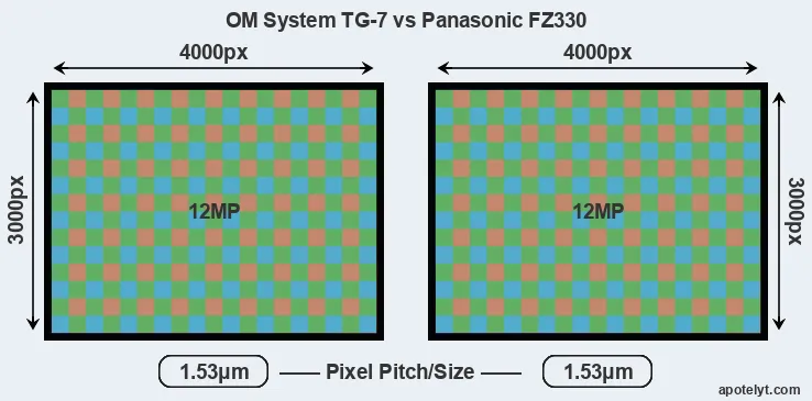 | Sensor Specs | OM System TG-7 | Panasonic FZ330 |