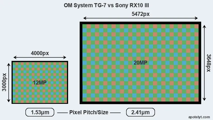 | Sensor Specs | OM System TG-7 | Sony RX10 III |