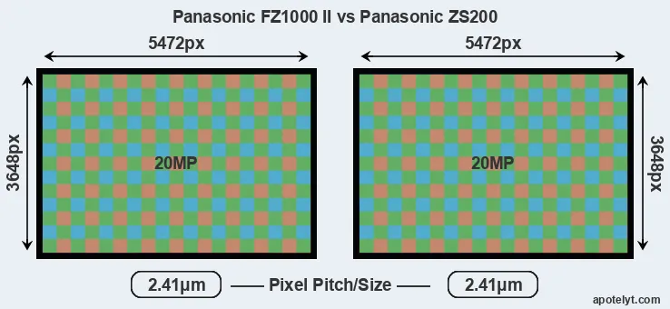 The two cameras under review do not only share the same sensor size, but also offer an identical resolution of 20 megapixels. This similarity in sensor specs implies that both the FZ1000 II and the ZS200 have the same pixel density, as well as the same pixel size. It should, however, be noted that the FZ1000 II is a somewhat more recent model (by 1 year) than the ZS200, and its sensor might have benefitted from technological advances during this time.