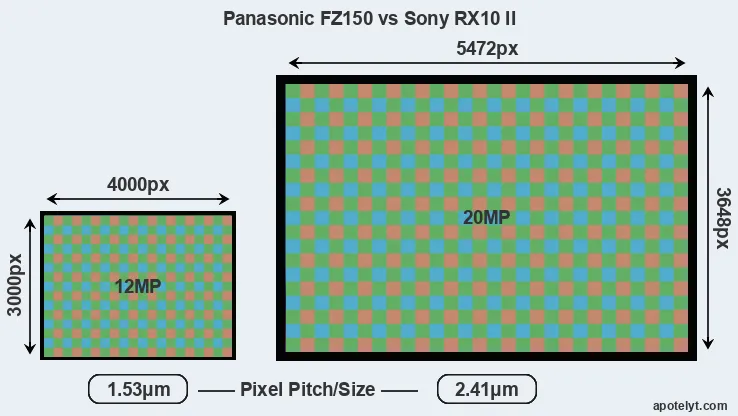 | Sensor Specs | Panasonic FZ150 | Sony RX10 II |