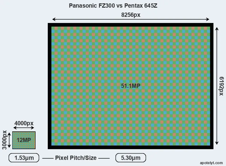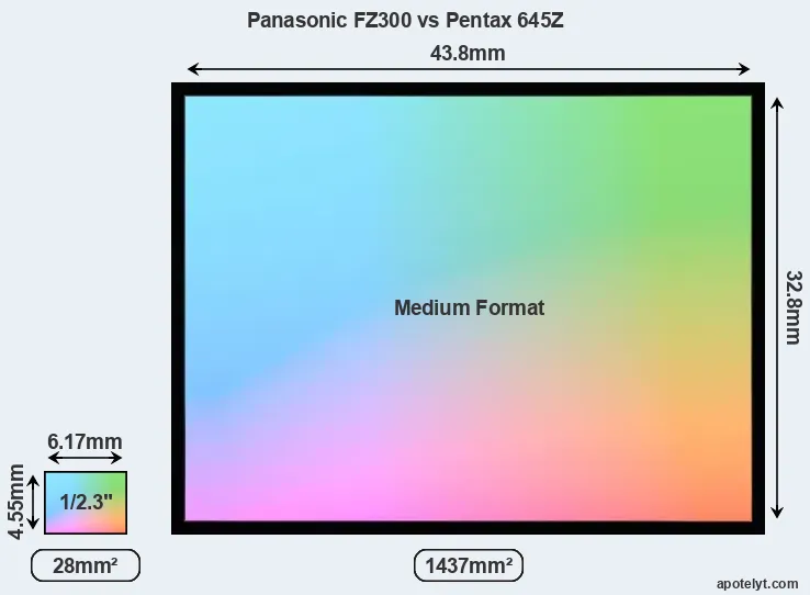 | Sensor Specs | Panasonic FZ300 | Pentax 645Z |