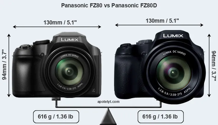 In this particular case, the Panasonic FZ80 and the Panasonic FZ80D have exactly the same width and height, and, thus, have identically-sized bodies. Moreover, the two cameras also share the same weight. In this context, it is worth noting that neither the FZ80 nor the FZ80D are weather-sealed.
