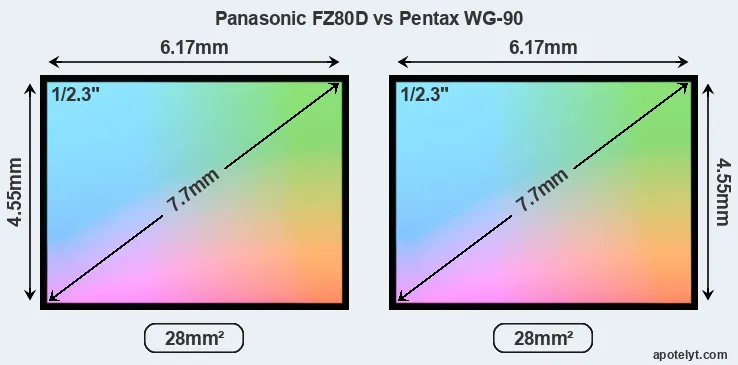 The Panasonic Lumix DC-FZ80D (called Panasonic FZ82D in some regions) and the Pentax WG-90 are two digital cameras that were revealed to the public, respectively, in July 2024 and November 2023. Both the FZ80D and the WG-90 are fixed lens compact cameras that are equipped with a 1/2.3-inch sensor. The Panasonic has a resolution of 18 megapixels, whereas the Pentax provides 15.9 MP.