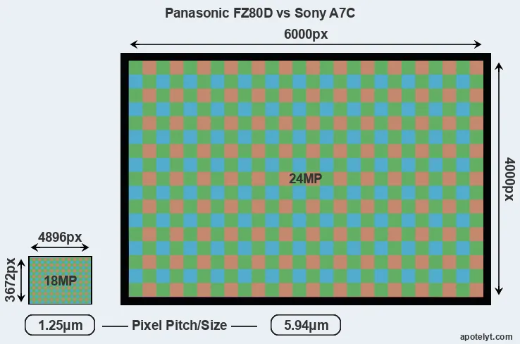 | Sensor Specs | Panasonic FZ80D | Sony A7C |