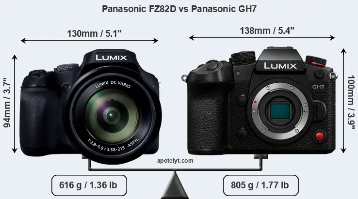 The above size and weight comparisons are to some extent incomplete and possibly misleading, as the FZ82D has a lens built in, whereas the GH7 is an interchangeable lens camera that requires a separate lens. Attaching the latter will add extra weight and bulk to the setup. You can compare the optics available for the GH7 and their specifications in the Micro Four Thirds Lens Catalog.