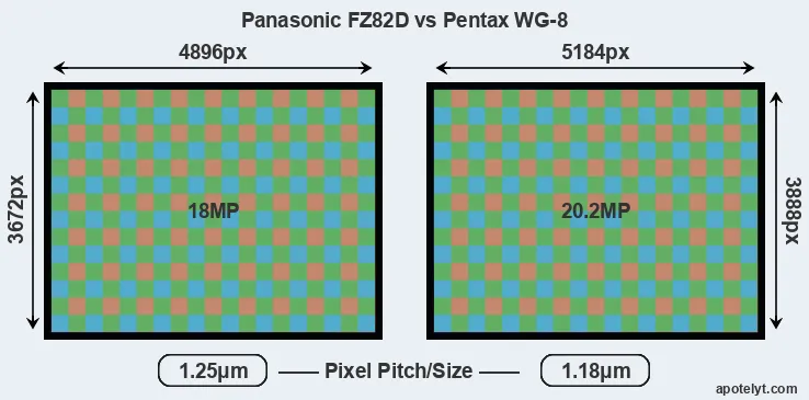 | Sensor Specs | Panasonic FZ82D | Pentax WG-8 |