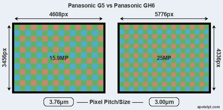 | Sensor Specs | Panasonic G5 | Panasonic GH6 |