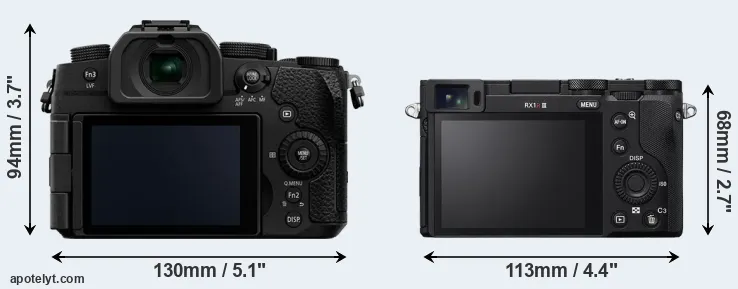 The above size and weight comparisons are to some extent incomplete and possibly misleading, as the RX1R III has a lens built in, whereas the G97 is an interchangeable lens camera that requires a separate lens. Attaching the latter will add extra weight and bulk to the setup. You can compare the optics available for the G97 and their specifications in the Micro Four Thirds Lens Catalog.