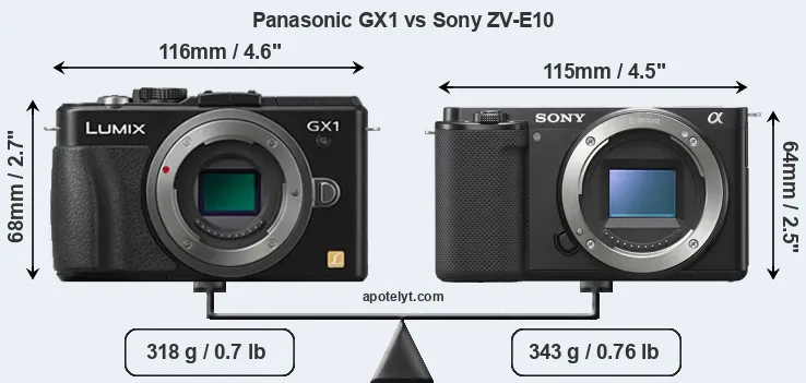 | Body Specs | Panasonic GX1 | Sony ZV-E10 |