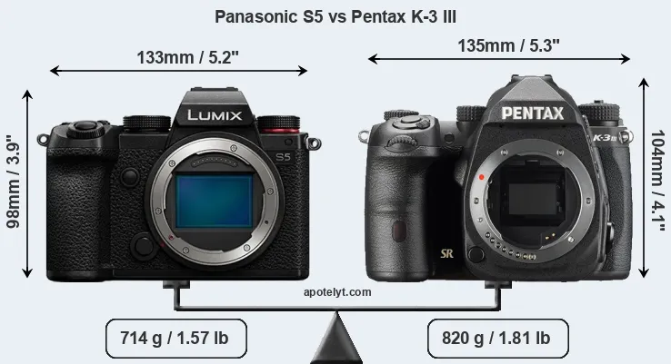 | Body Specs | Panasonic S5 | Pentax K-3 III |
