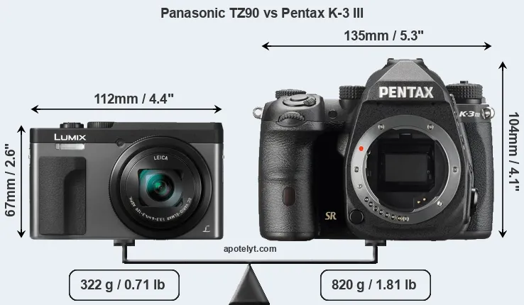 | Body Specs | Panasonic TZ90 | Pentax K-3 III |