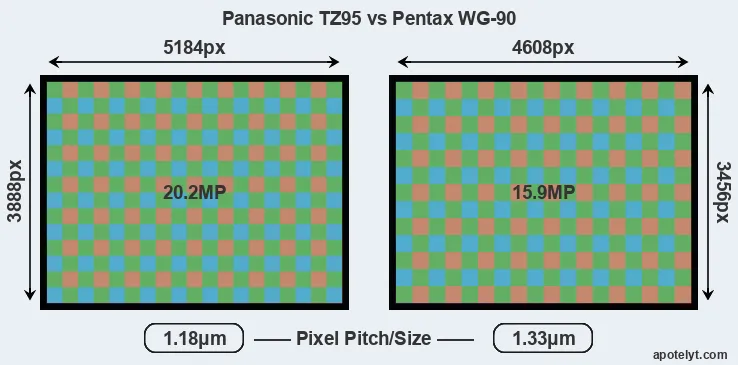 | Sensor Specs | Panasonic TZ95 | Pentax WG-90 |