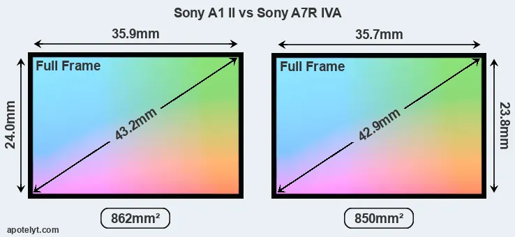 Both cameras under consideration feature a full frame sensor, but their sensors differ slightly in size. The sensor area in the A7R IVA is 1 percent smaller. They nevertheless have the same format factor of 1.0. Both cameras have a native aspect ratio (sensor width to sensor height) of 3:2.
